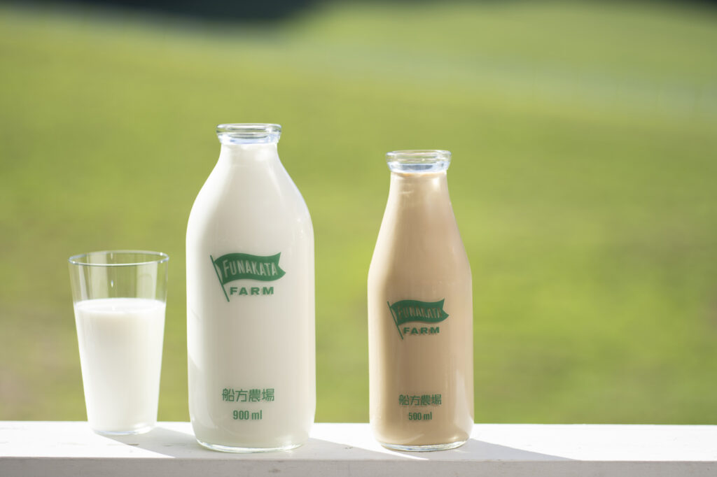 船方農場では、牛に清らかな山水を飲ませています。山から湧き出る水はただの自然水ではなく、水質検査をきちんと行い、安全性を確認したものです。その安心できる水と、季節ごとに変わる草を組み合わせることで、牛乳は四季を映す飲み物となります。