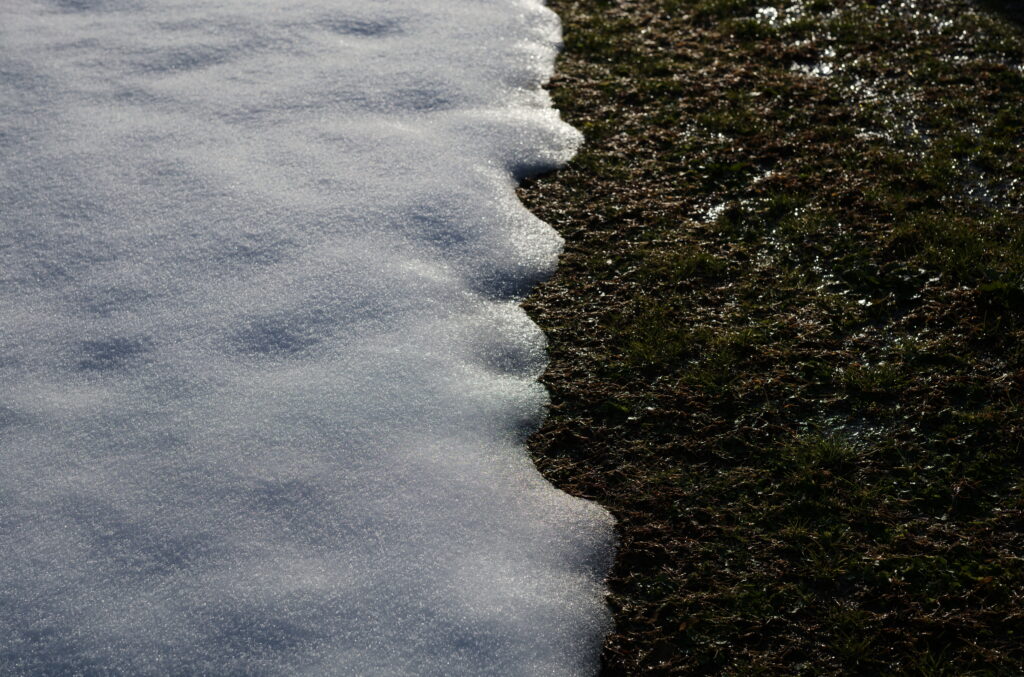 山に積もった雪は、すぐには溶けません。