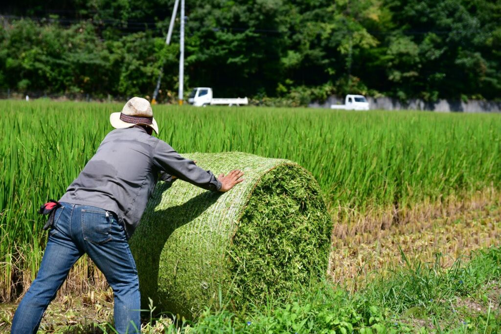 さらに、稲刈りのあとに残る稲わらも大切な資源です。牛舎では餌として役立つだけでなく、敷料として牛の寝床を守り、快適な暮らしを支えます。そして最終的には堆肥として田んぼに戻り、翌年の稲を育てる土を豊かにするのです。
